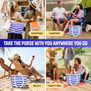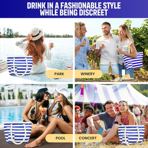 Surfside Essential Beach Wine/Alcohol Tote Bag Wine Cooler Bag Leakproof Insulated Purse Carrier with Spout Hidden Compartments Holds 2 bottles of Wine for Travel BYOB Restaurant Party Dinner